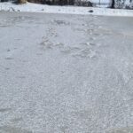 Ondanks dat het vannacht goed gevroren heeft en we hoopten op een prachtige ijslaag, moeten we toch slecht nieuws brengen. Helaas is er op verschillende plekken over de baan gelopen toen er sneeuw lag. Deze voetstappen zijn nu hard opgevroren.