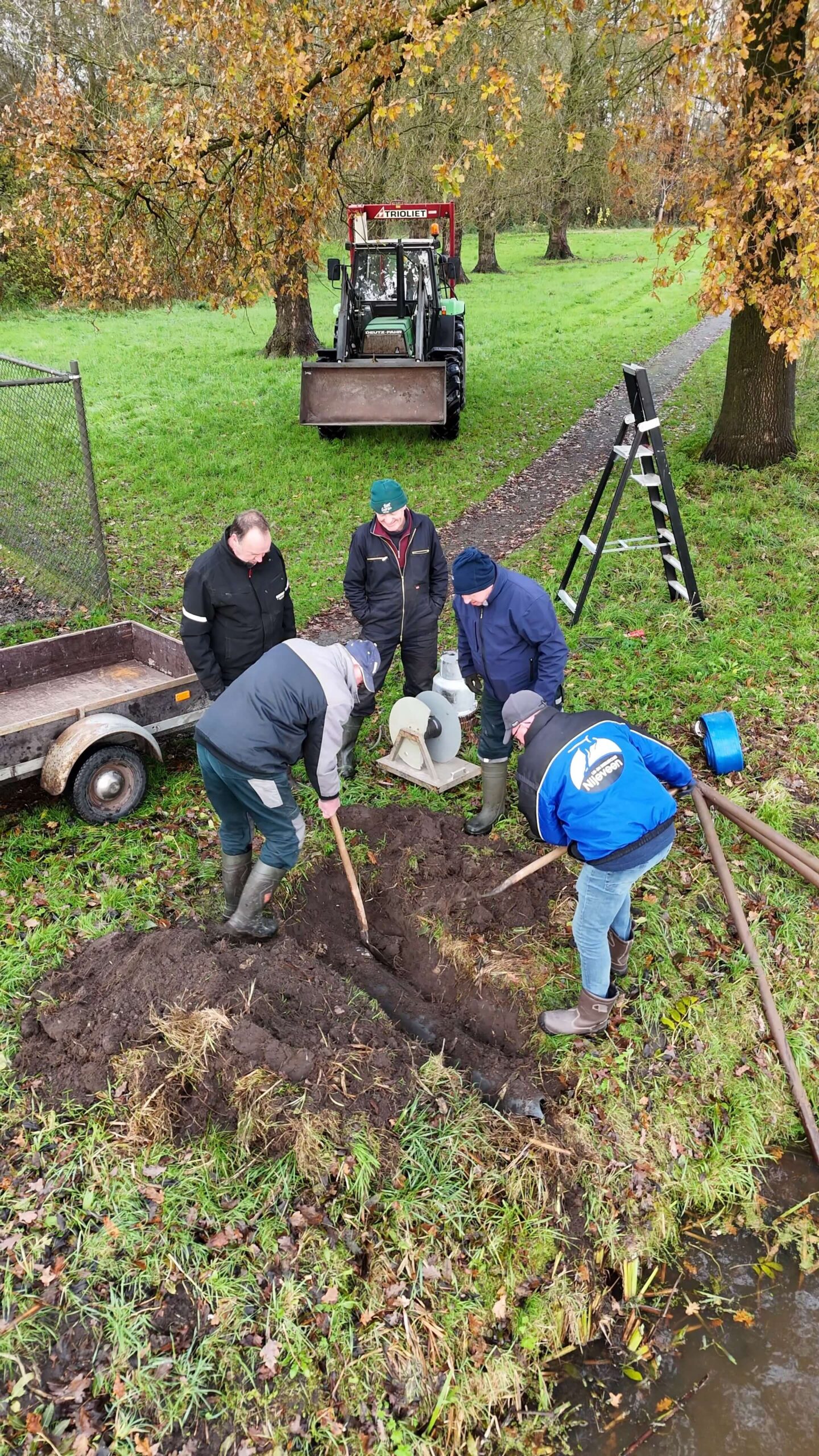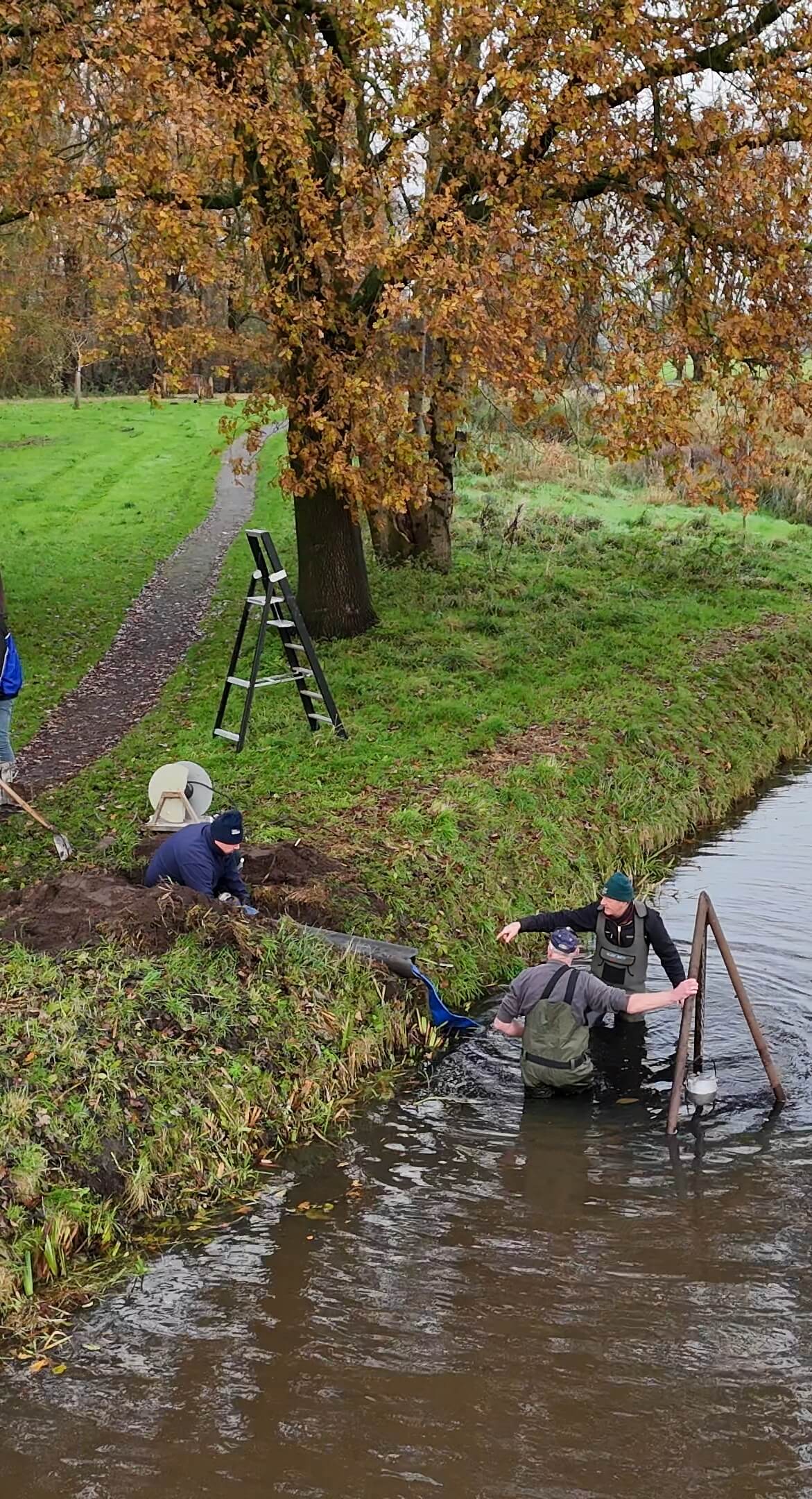 Vrijwilligers plaatsen pomp: Water op de natuurijsbaan